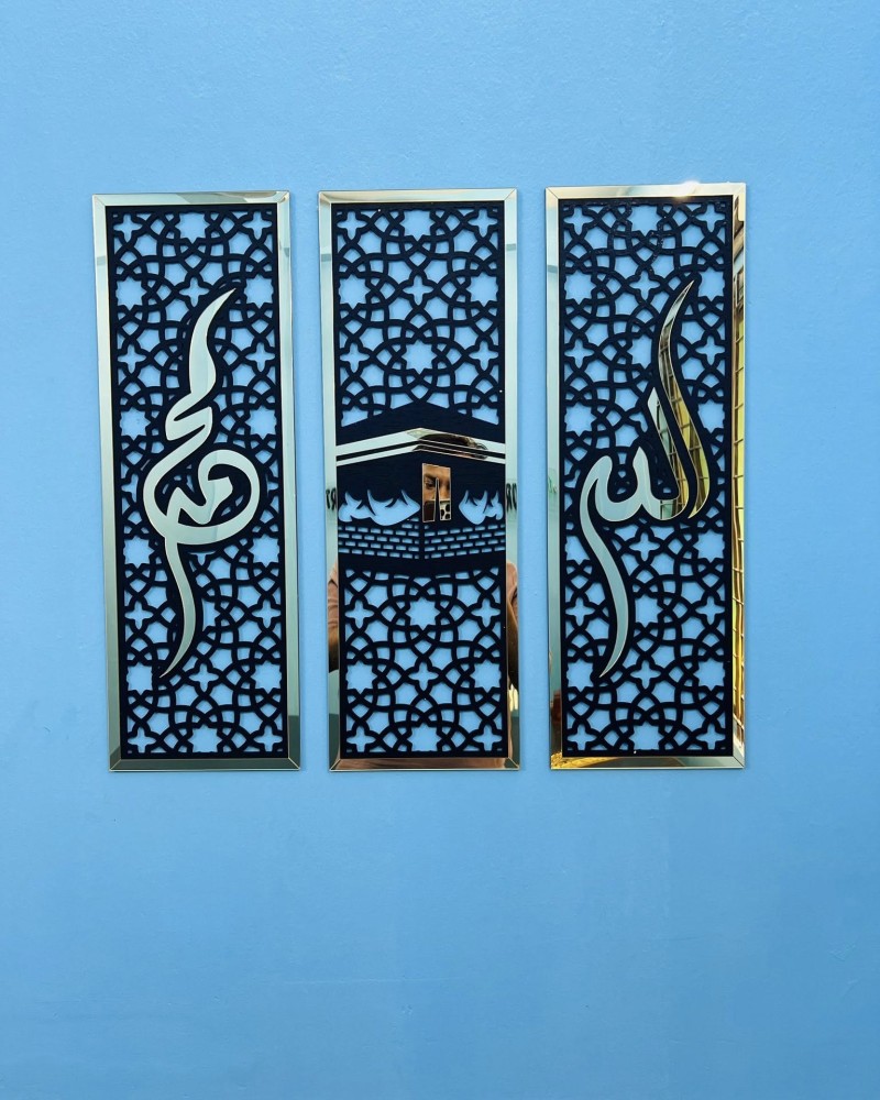 3 Piece Luxury Islamic Mirror Set – Kaaba – Allah Calligraphy in Golden Mirror Acrylic