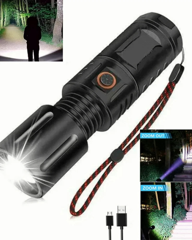RECHARGEABLE LED TORCH LIGHT, WATERPROOF STRONG LED FLASHLIGHT WITH POWER BANK